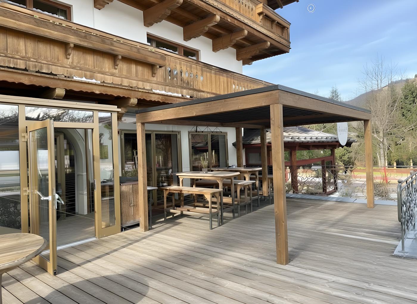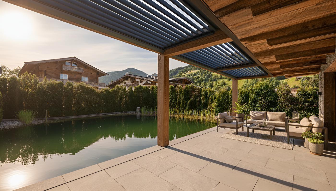 Bioklimatische Pergola Misteral WOOD: Pionierendes Design, Stabilität und Edles Holz