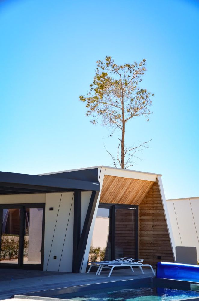 Jede Pergola wurde sorgfältig an den spezifischen Typ des Mobilheims angepasst, um perfekte Passform und Harmonie mit der Resort-Architektur zu gewährleisten.