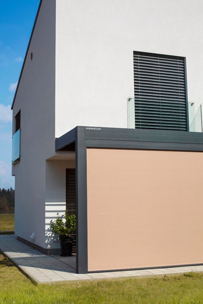 Dodatki pergole: ZIP screen rolo v peščeni barvi.