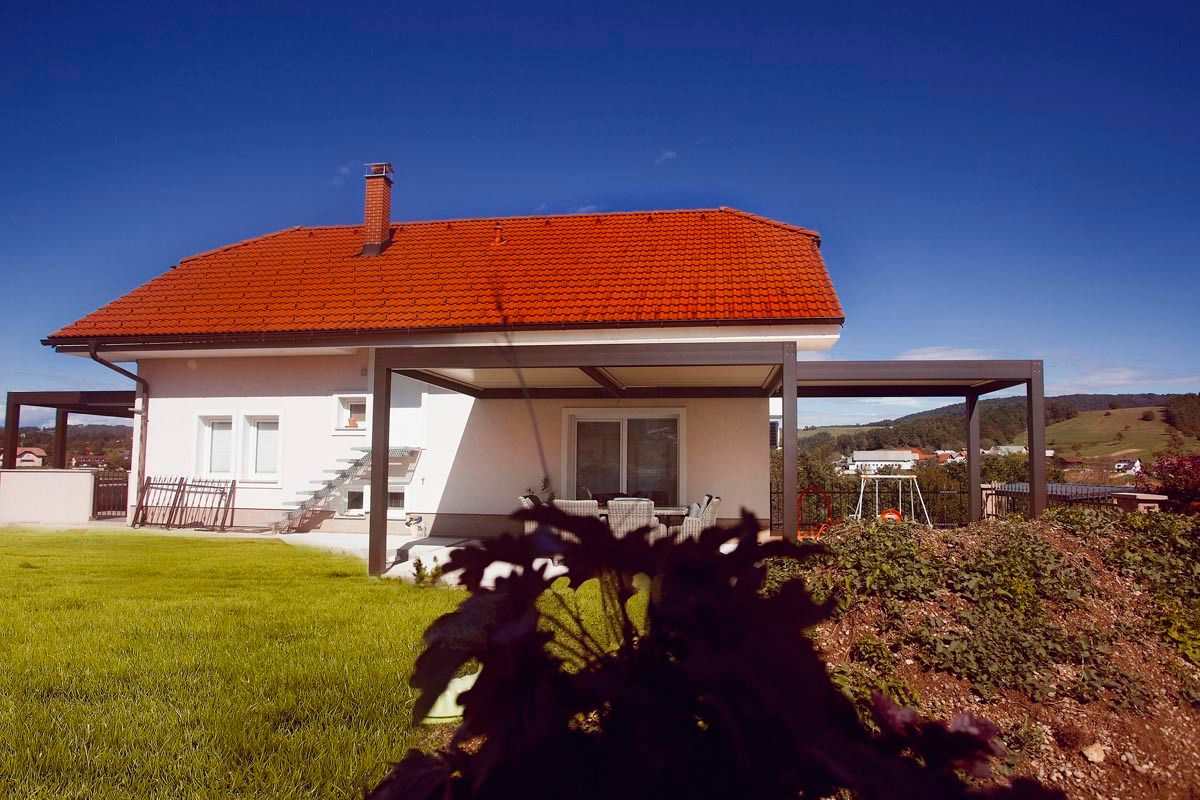 Čudovita enopoljna bioklimatska pergola v manjših dimenzijah na terasi novogradnje v Kranju.