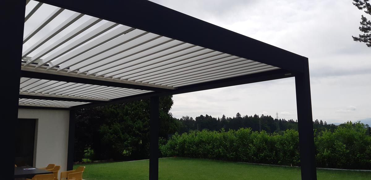 Pergola je sestavljena iz dveh polj vzporednih rotirajočih lamel z možnostjo naklona do 160°, ki omogočajo prilagoditev svetlobi in zračenju glede na vremenske razmere.
