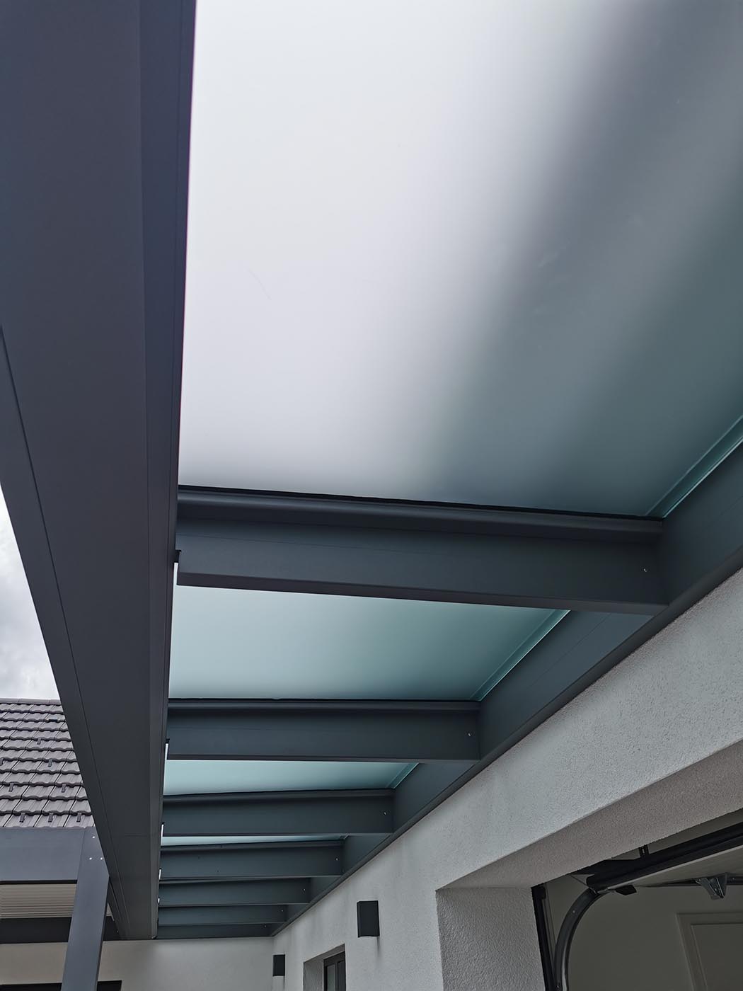 Glasdach – Robust, Sicher und LichtdurchflutetDas Dach besteht aus gehärtetem Sicherheitsglas, das maximales Tageslicht hereinlässt und gleichzeitig optimalen Wetterschutz bietet.