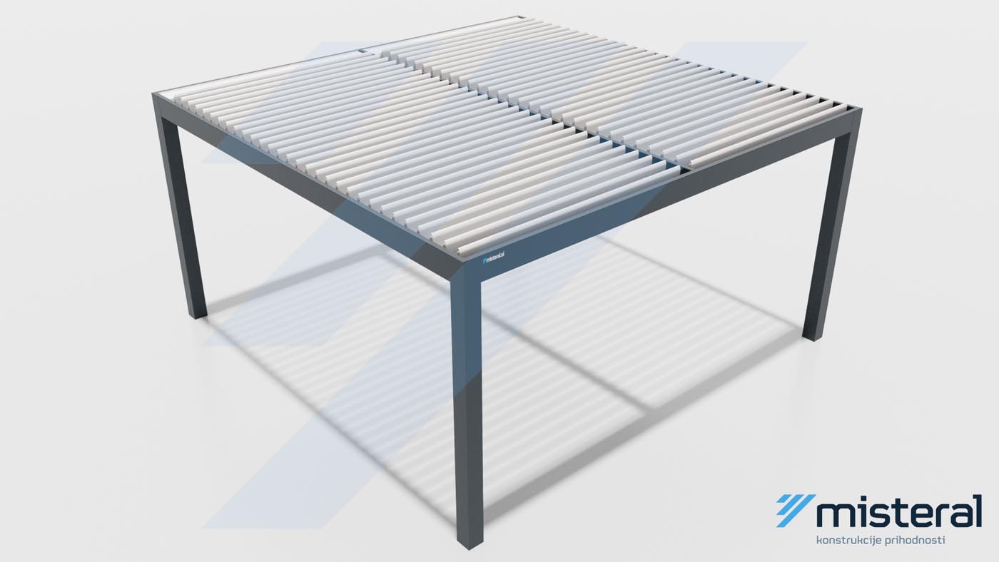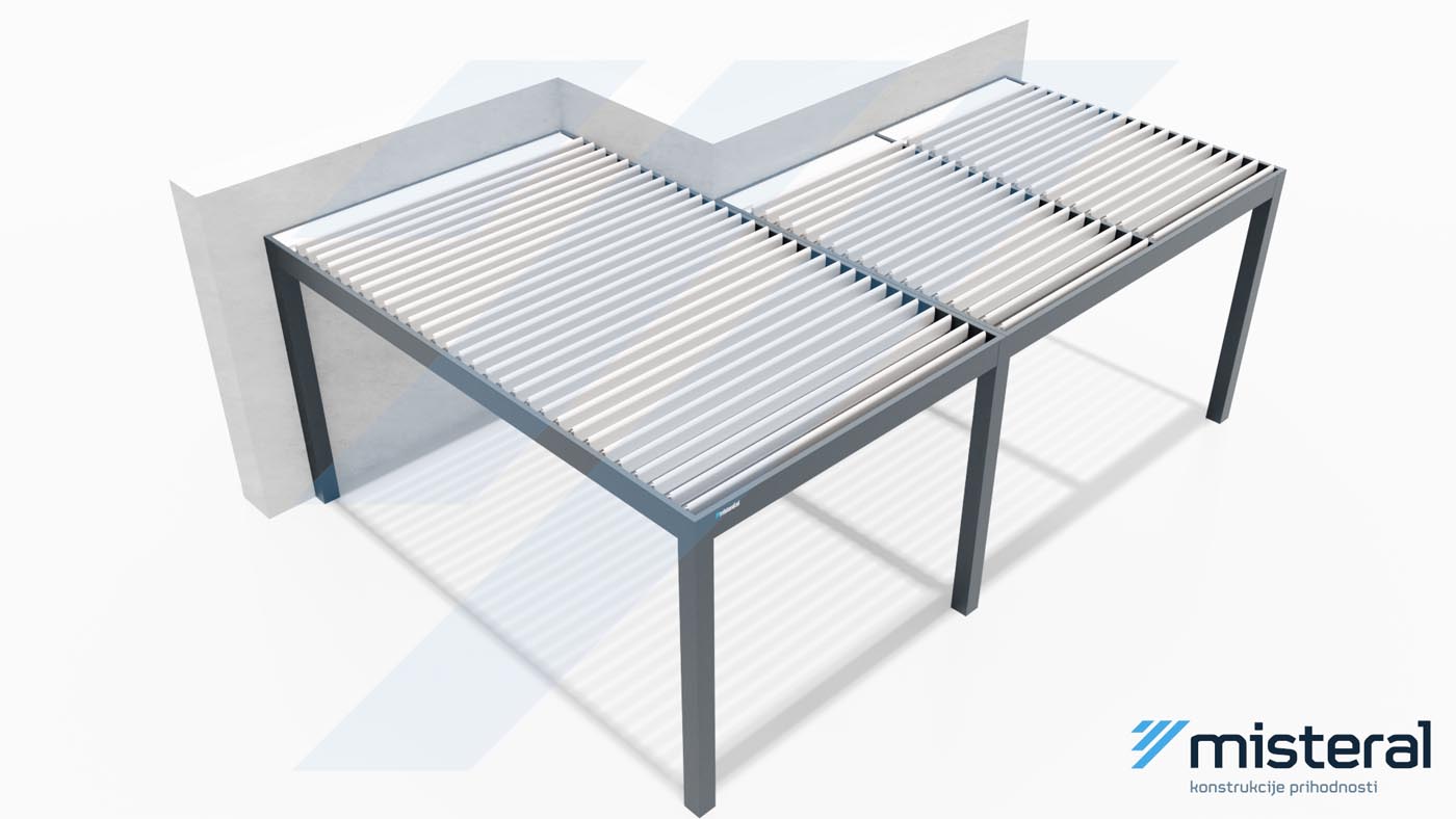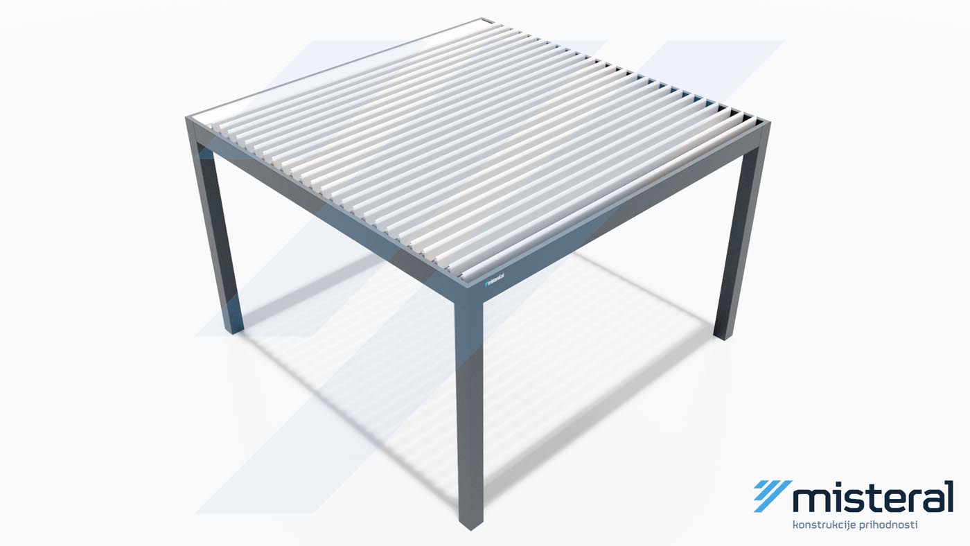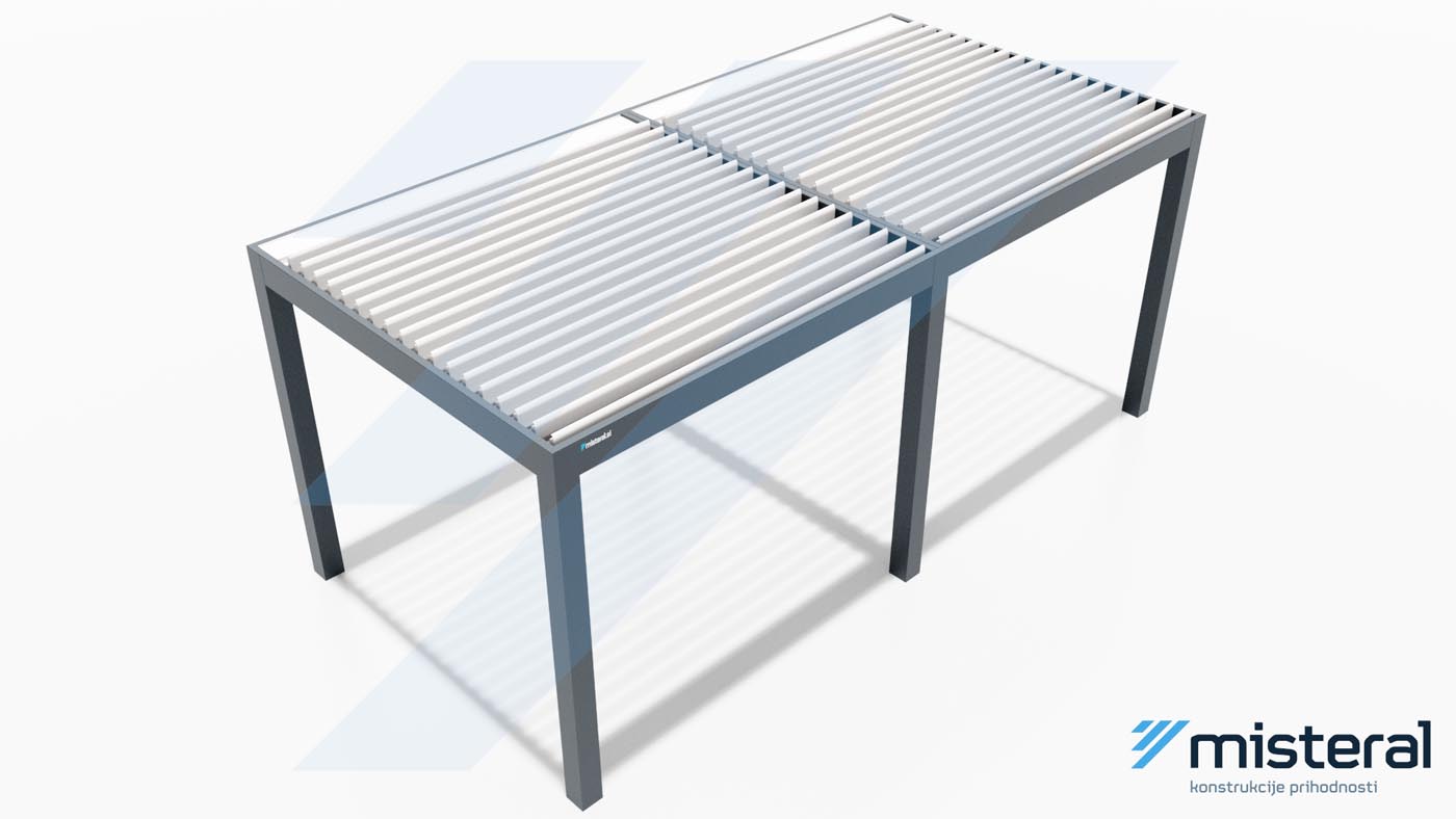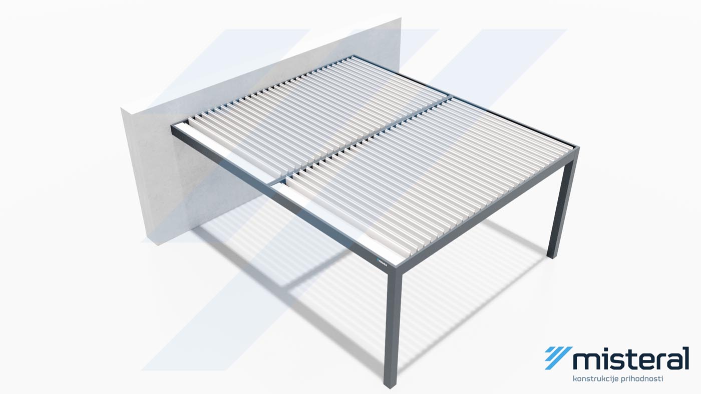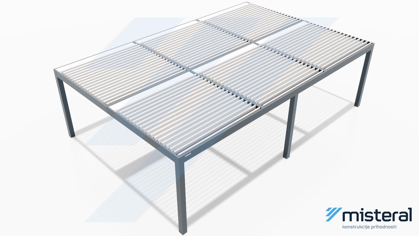 Technische Eigenschaften - Bioklimatische PergolenBioklimatische Pergola Misteral ist eine Pergola, die die Ausführung von Pergolen mit großen Spannweiten bei minimaler Anzahl an Stützen ermöglicht. Wir können „regelmäßige“ Formen ausführen (quadratische Pergolen und rechteckige Pergolen) sowie „unregelmäßige“ Formen bioklimatischer Pergolen, wie z. B. Dreiecksformen usw.