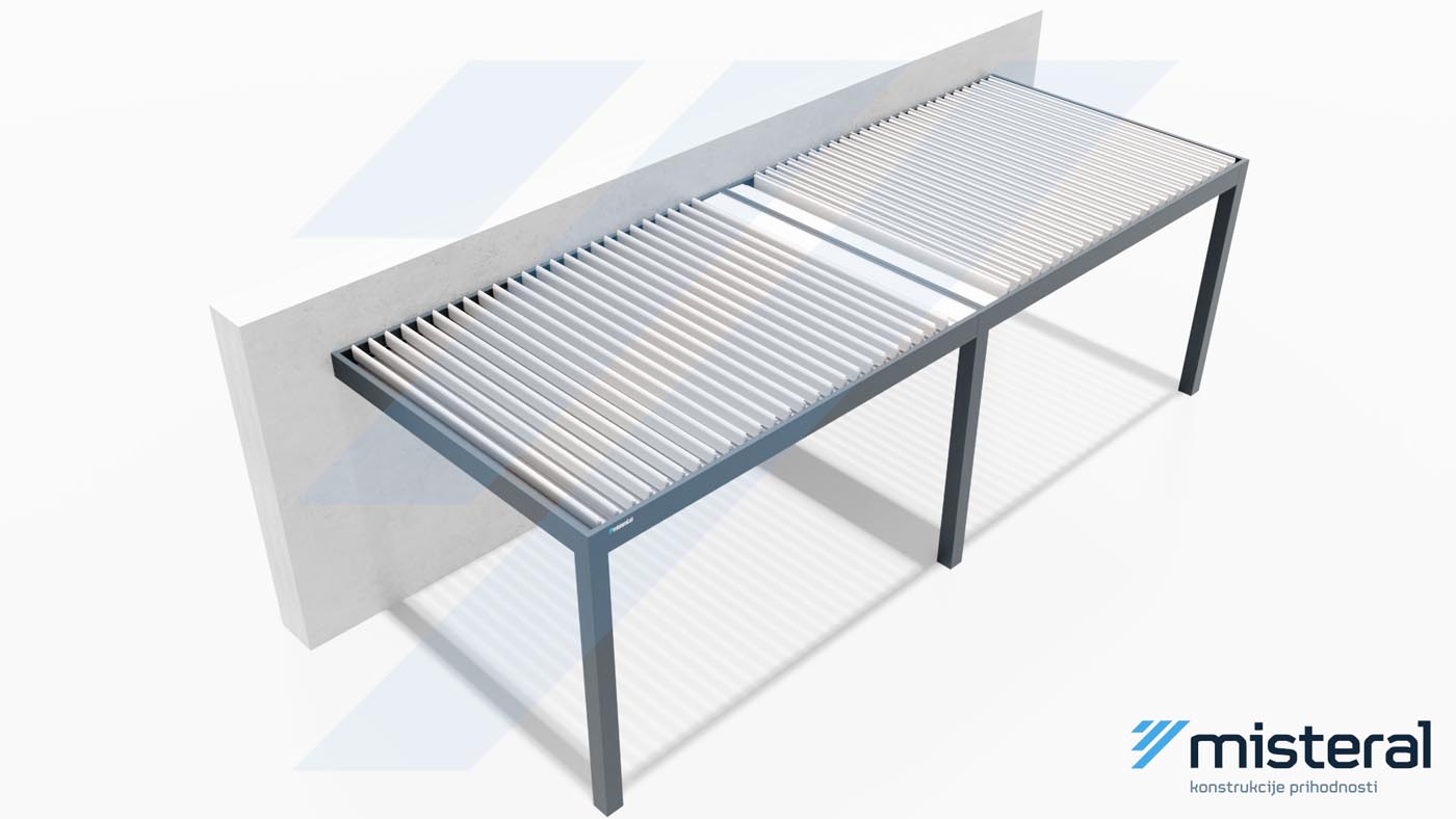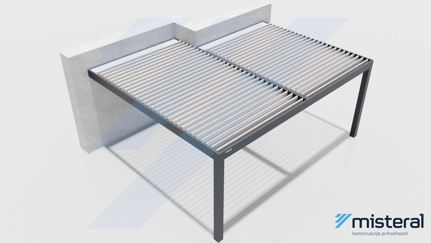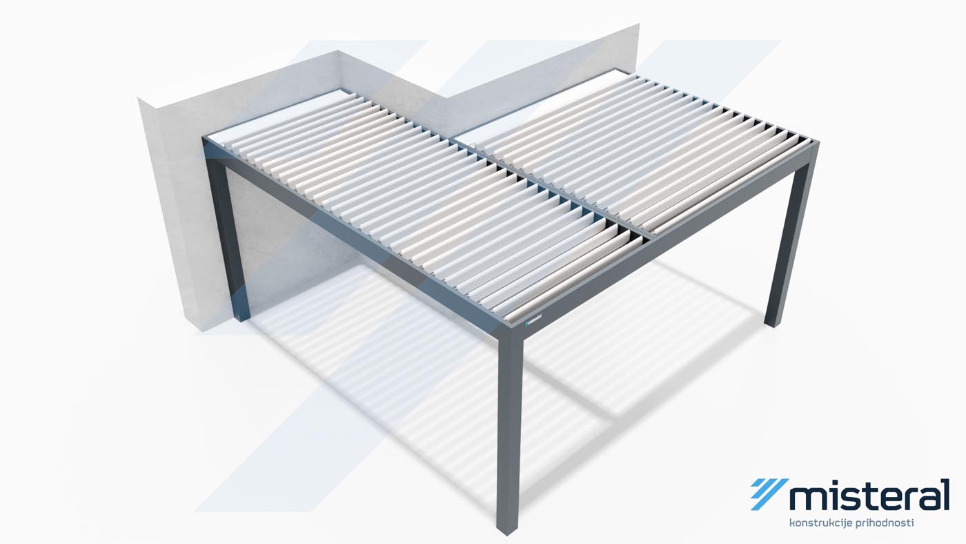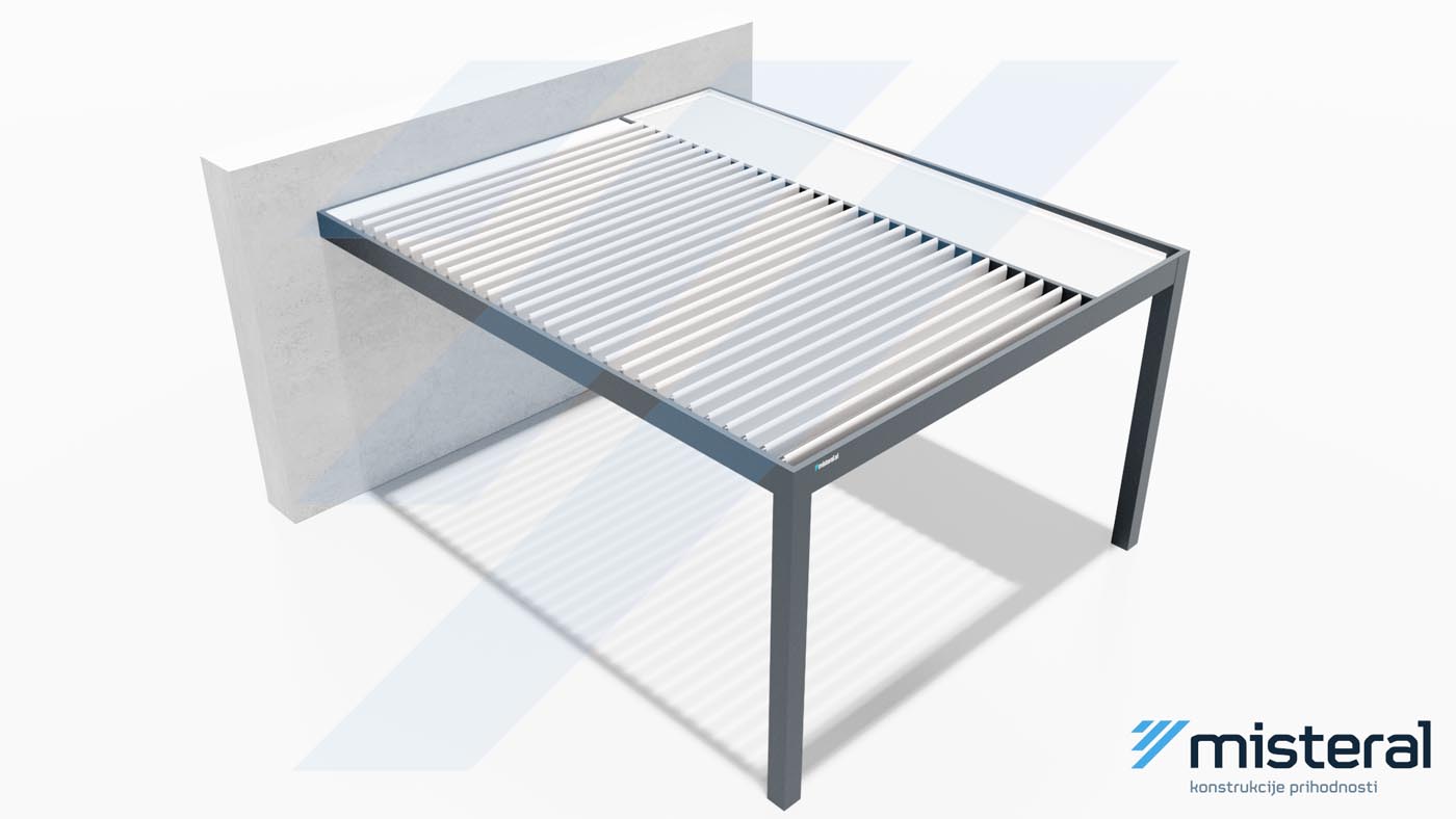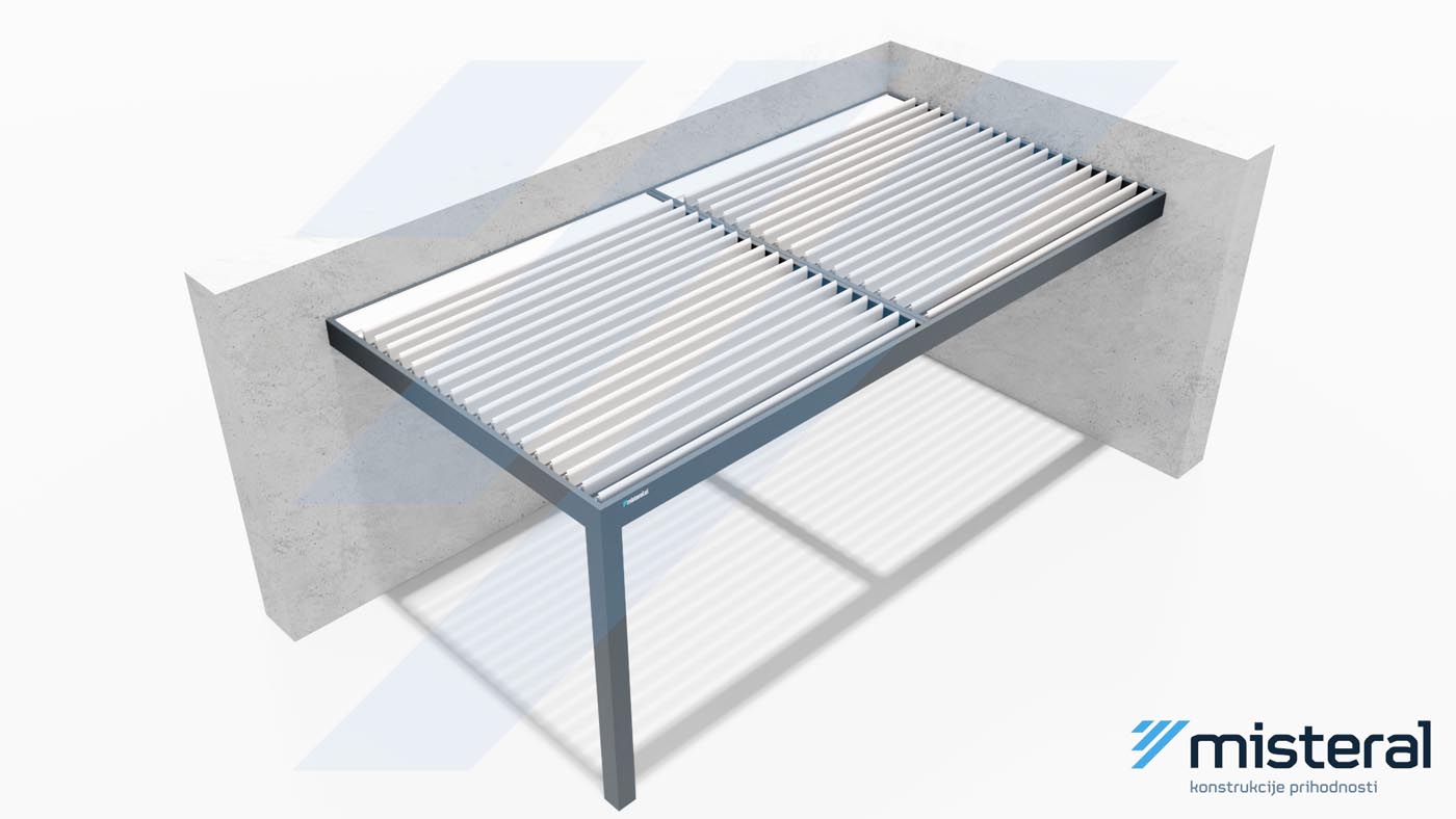 Technische Eigenschaften - Bioklimatische PergolenBioklimatische Pergola Misteral ist eine Pergola, die die Ausführung von Pergolen mit großen Spannweiten bei minimaler Anzahl an Stützen ermöglicht. Wir können „regelmäßige“ Formen ausführen (quadratische Pergolen und rechteckige Pergolen) sowie „unregelmäßige“ Formen bioklimatischer Pergolen, wie z. B. Dreiecksformen usw.