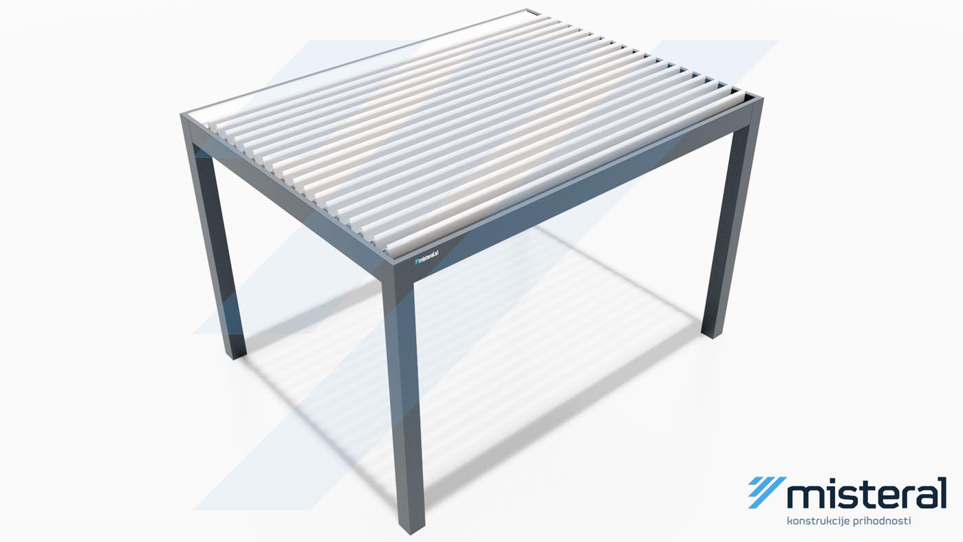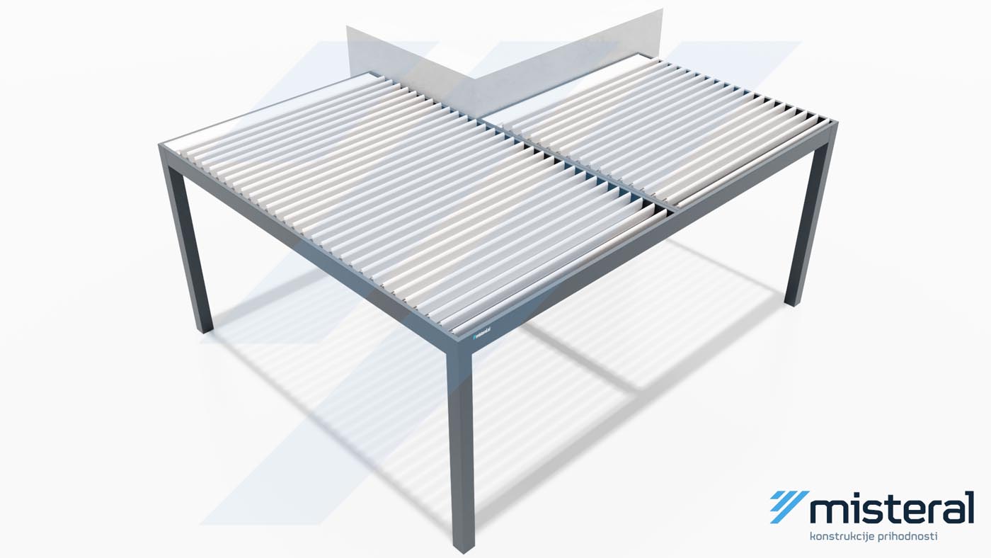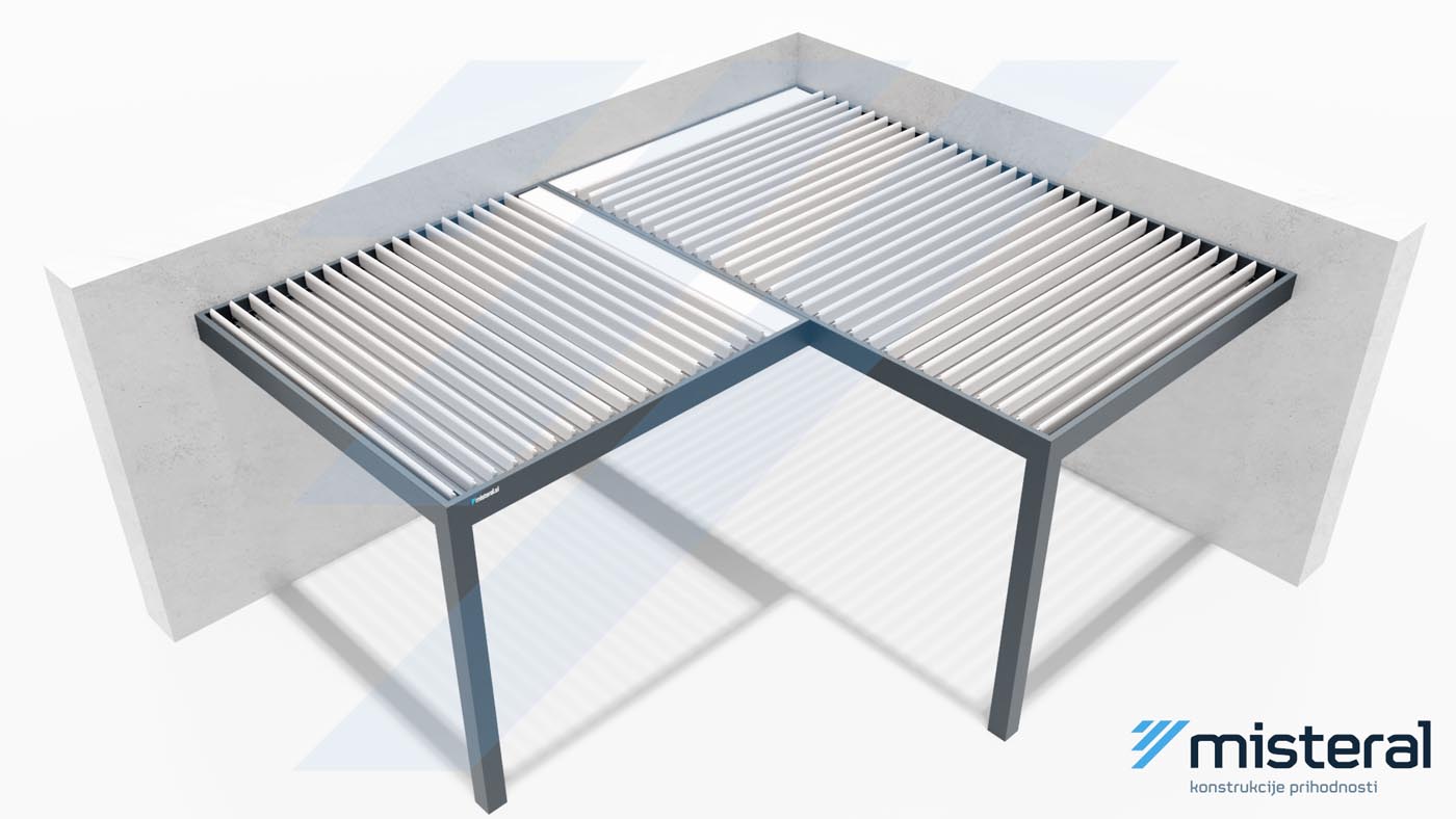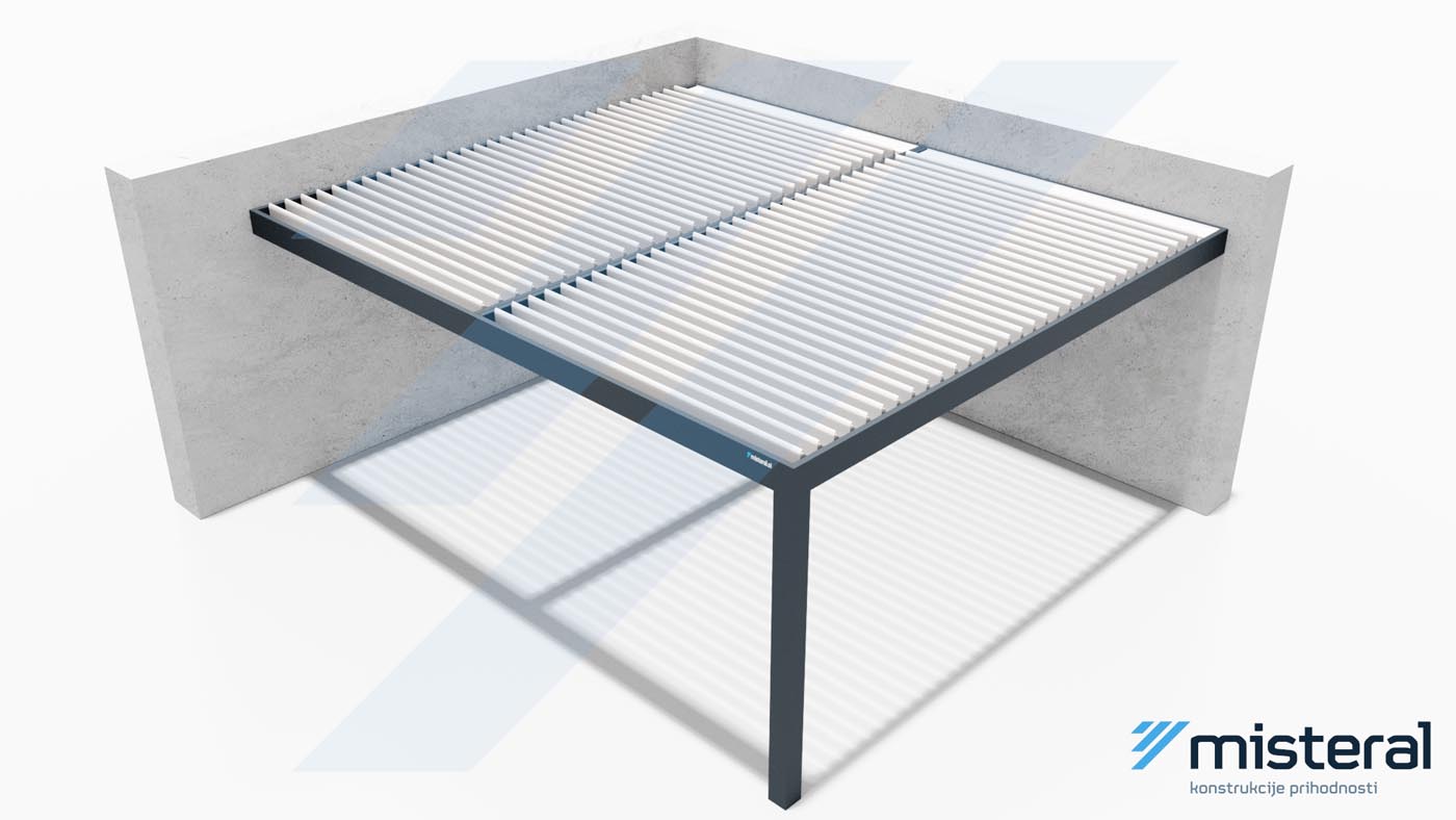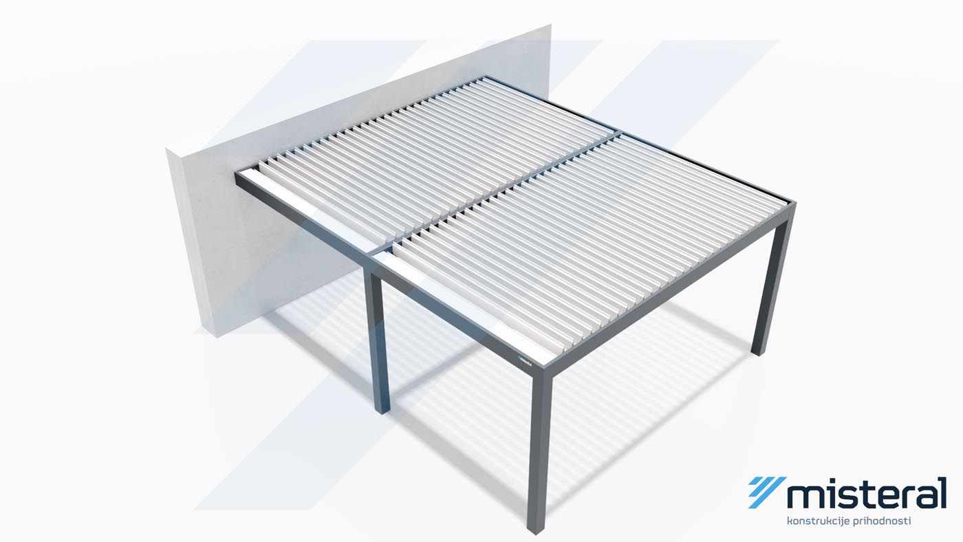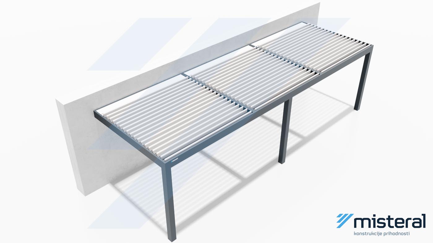 Technische Eigenschaften - Bioklimatische PergolenBioklimatische Pergola Misteral ist eine Pergola, die die Ausführung von Pergolen mit großen Spannweiten bei minimaler Anzahl an Stützen ermöglicht. Wir können „regelmäßige“ Formen ausführen (quadratische Pergolen und rechteckige Pergolen) sowie „unregelmäßige“ Formen bioklimatischer Pergolen, wie z. B. Dreiecksformen usw.