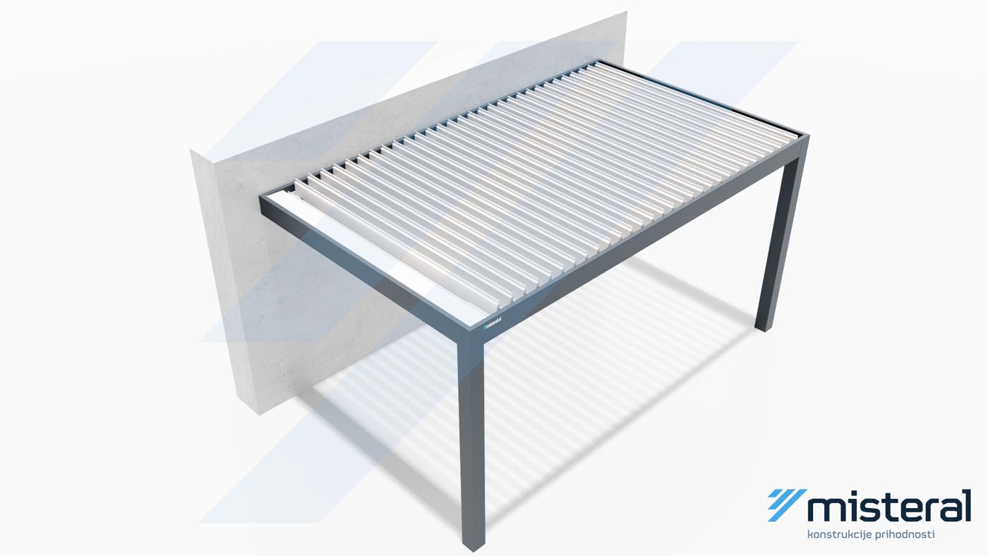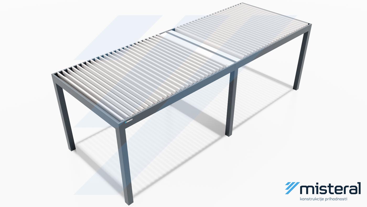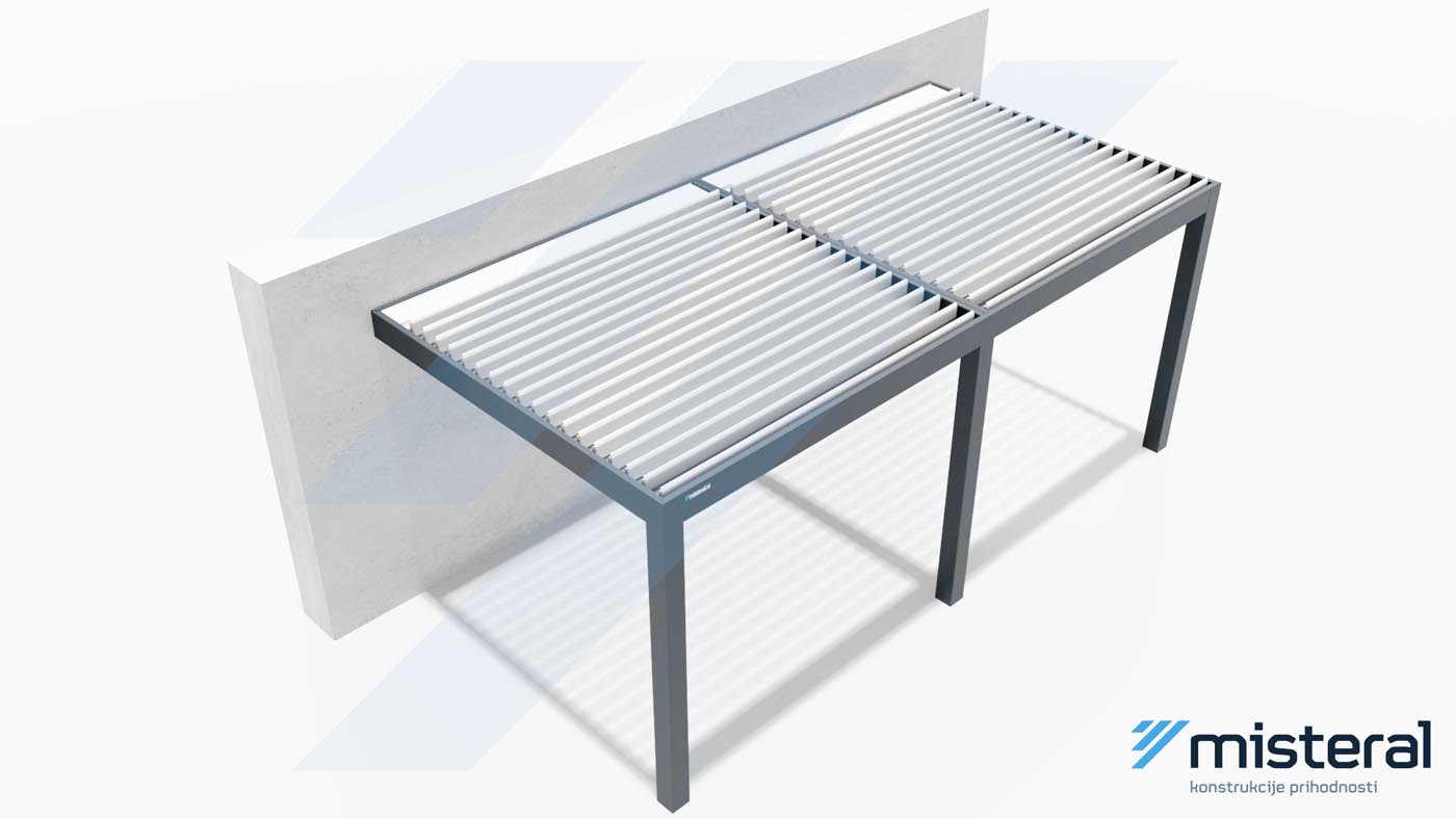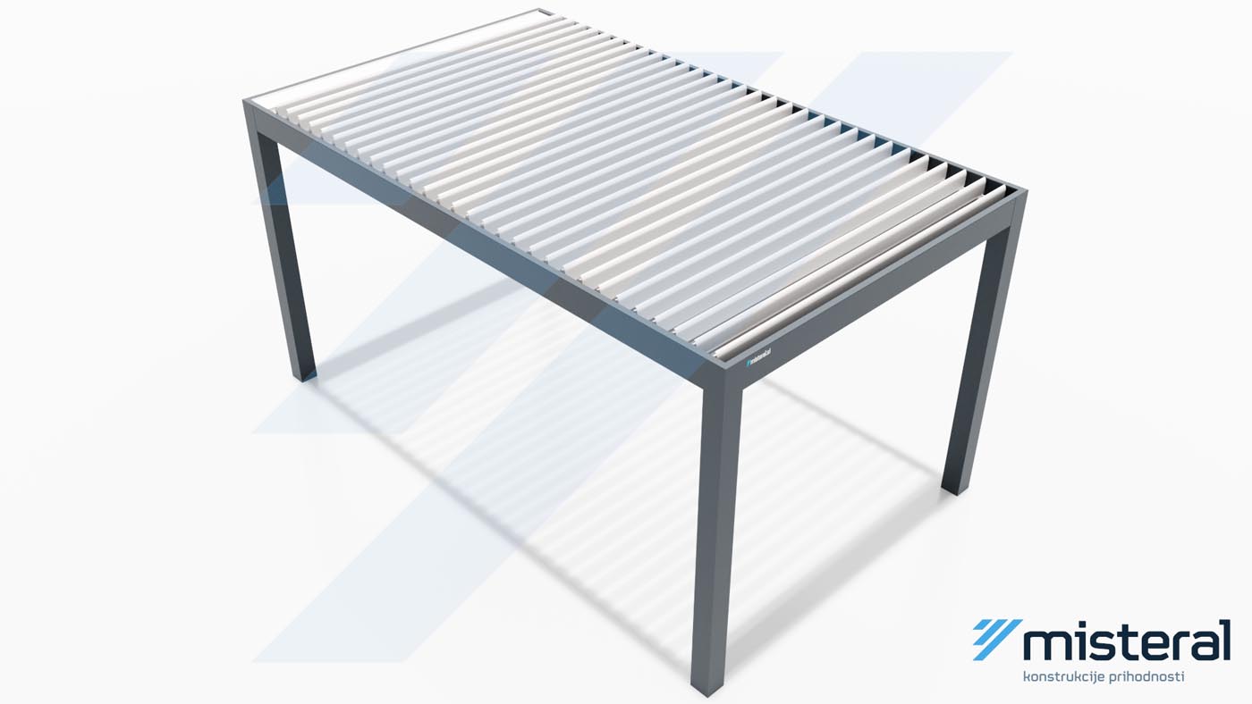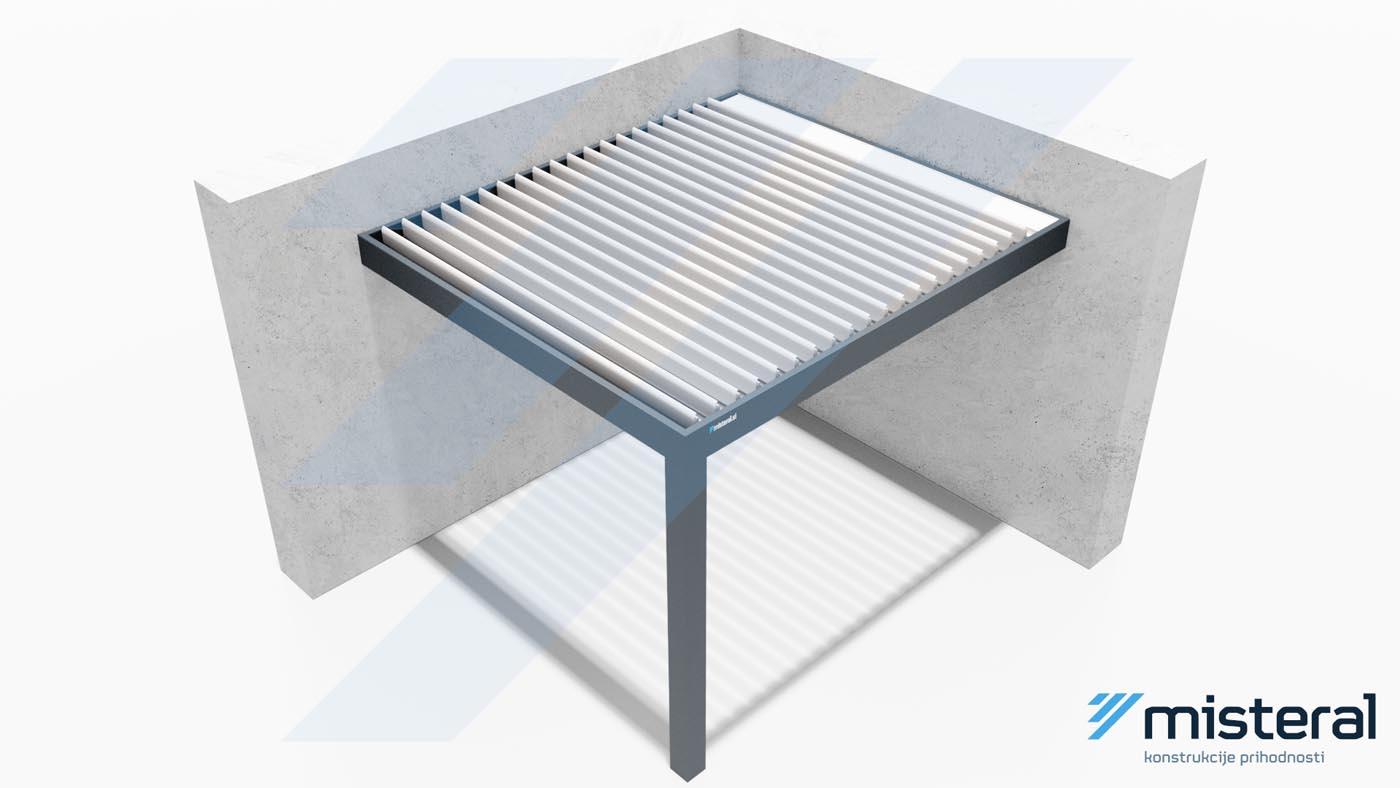 Technische Eigenschaften - Bioklimatische PergolenBioklimatische Pergola Misteral ist eine Pergola, die die Ausführung von Pergolen mit großen Spannweiten bei minimaler Anzahl an Stützen ermöglicht. Wir können „regelmäßige“ Formen ausführen (quadratische Pergolen und rechteckige Pergolen) sowie „unregelmäßige“ Formen bioklimatischer Pergolen, wie z. B. Dreiecksformen usw.