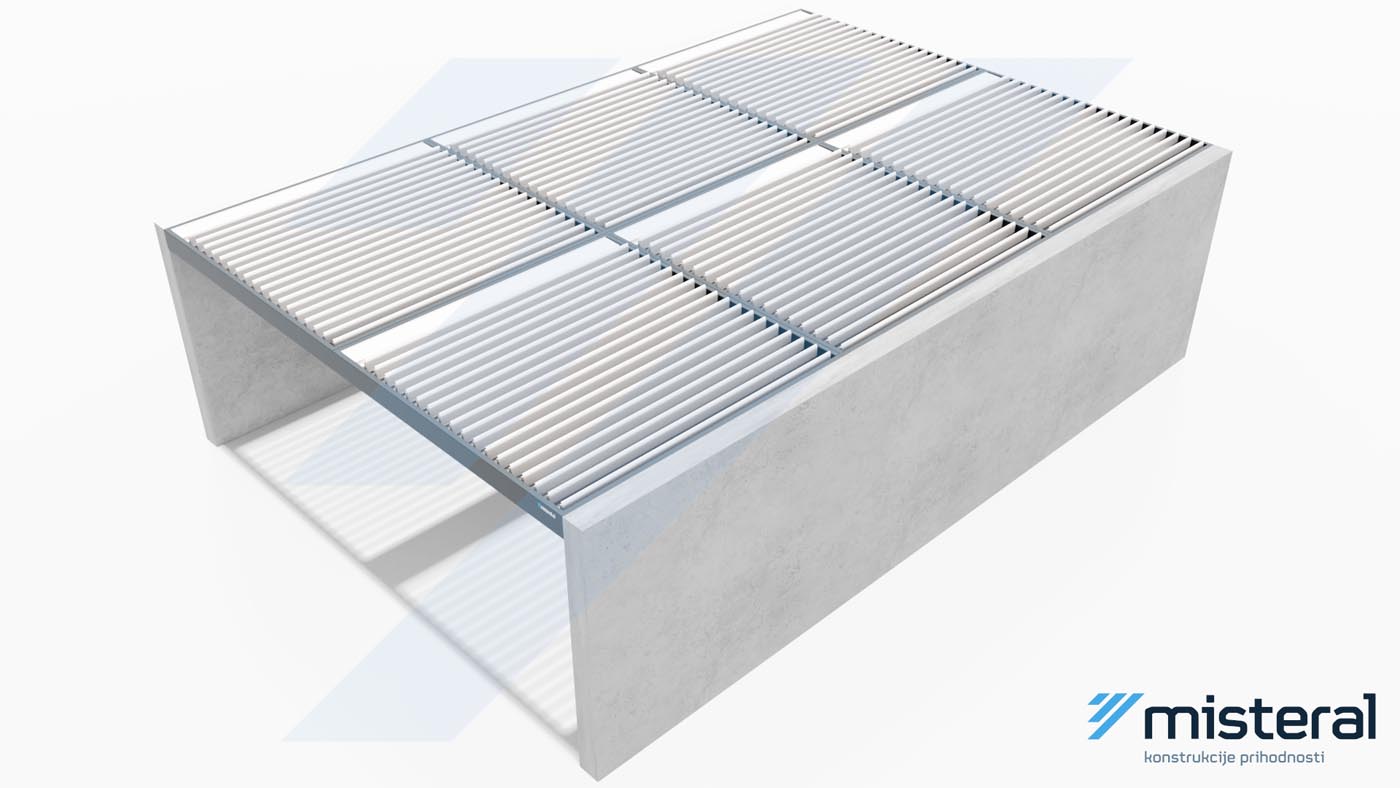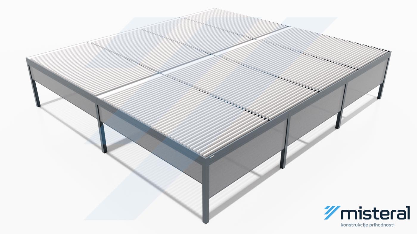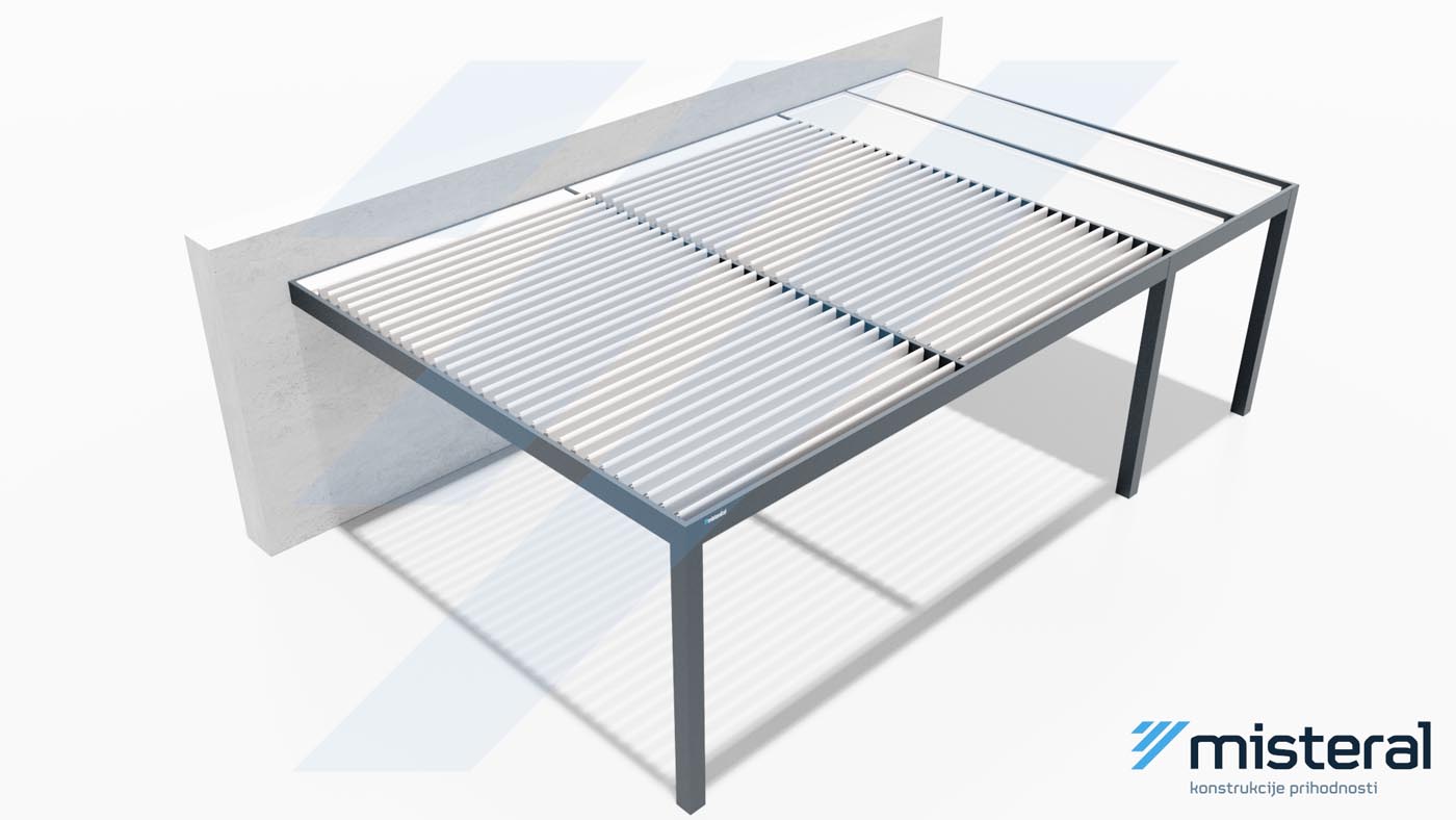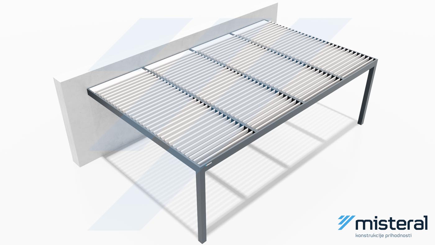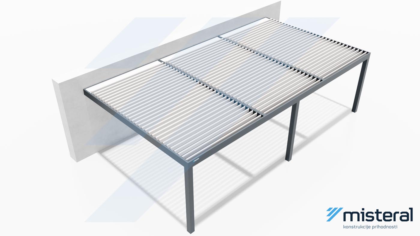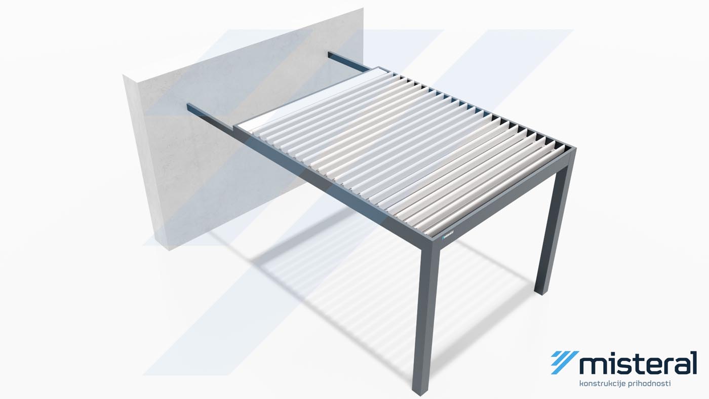 Technische Eigenschaften - Bioklimatische PergolenBioklimatische Pergola Misteral ist eine Pergola, die die Ausführung von Pergolen mit großen Spannweiten bei minimaler Anzahl an Stützen ermöglicht. Wir können „regelmäßige“ Formen ausführen (quadratische Pergolen und rechteckige Pergolen) sowie „unregelmäßige“ Formen bioklimatischer Pergolen, wie z. B. Dreiecksformen usw.